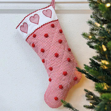Christmas Stocking - Red & White Stripe or Gingham Check