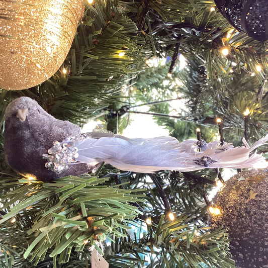 Snowy Blue Velvet Clip Bird