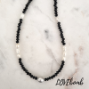 LOVEbomb hand strung necklace featuring faceted onyx beads and fresh water pearls