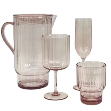 Pink Ribbed Acrylic Wine Glass