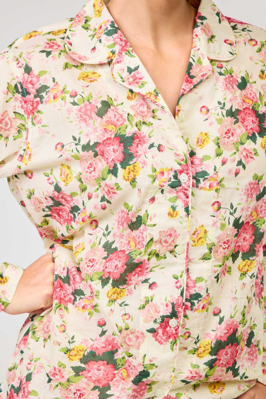 Arabella Long Sleeve Pyjama set - Cream with pick flowers