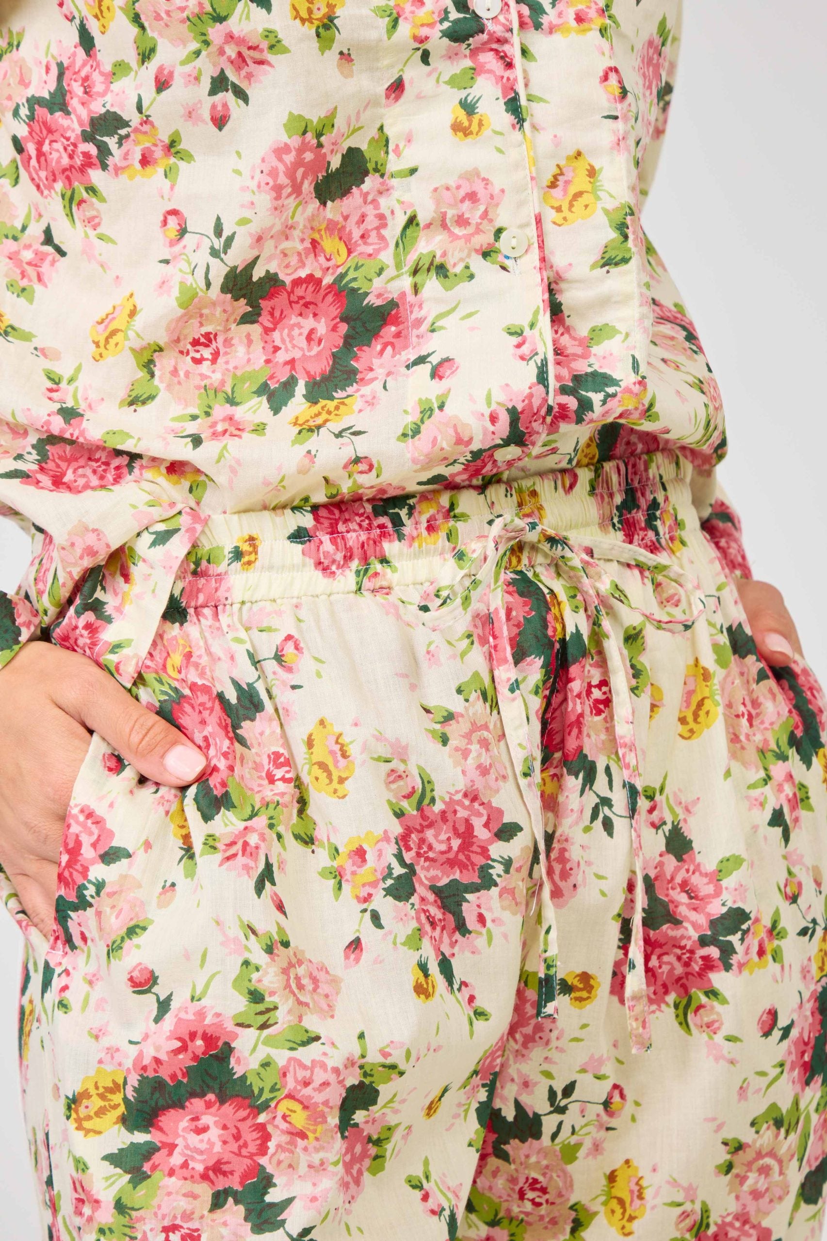 Arabella Long Sleeve Pyjama set - Cream with pick flowers