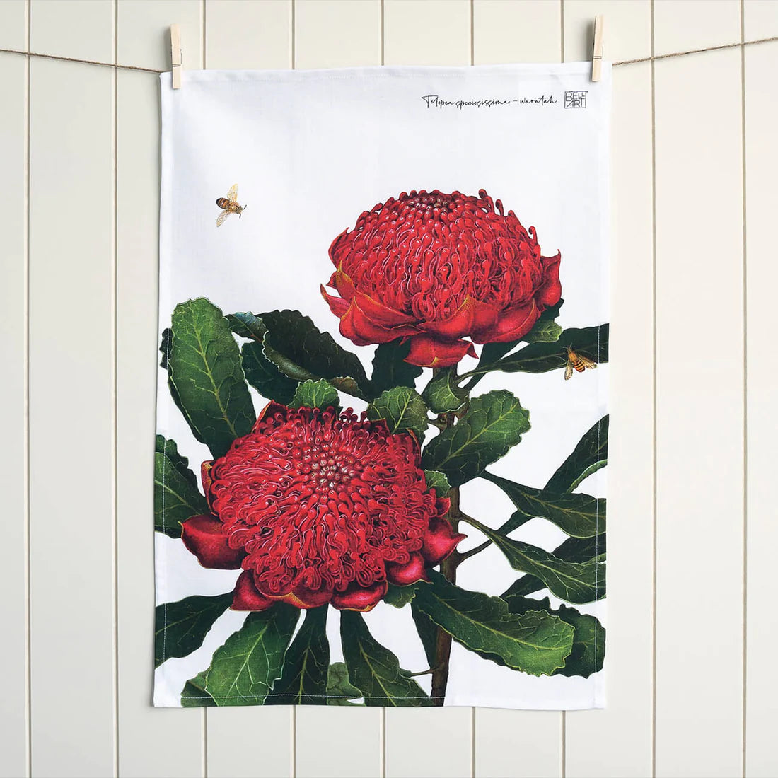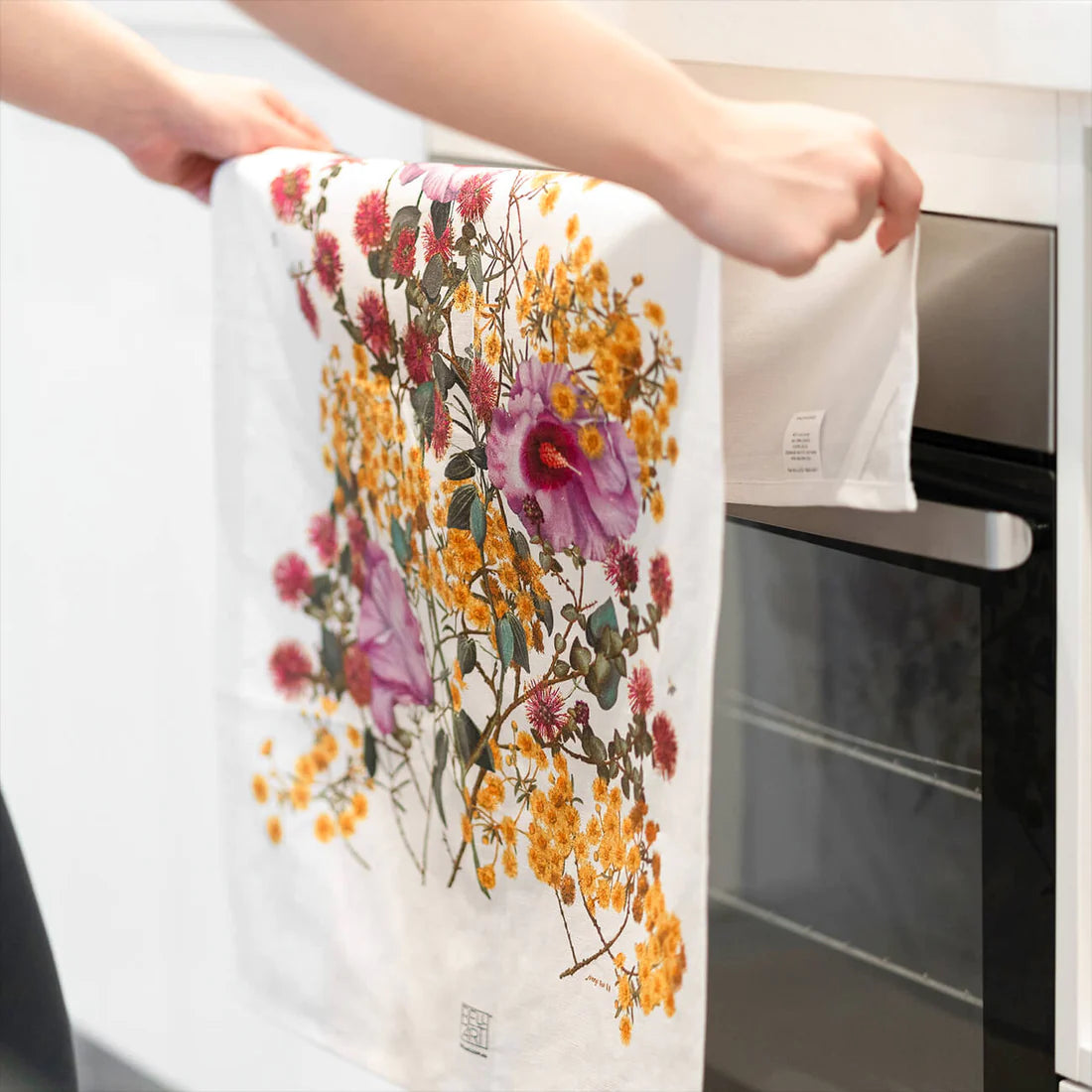 Mr Towaza Bread Board - This beautiful tea towel features a stunning piece of artwork by Meryl Bell that was originally commissioned by a fellow Australian wildflower admirer, Mr Towaza from Japan. Whilst he commissioned Meryl to paint it directly onto a Japanese Maple bread board, you can enjoy it in your own kitchen too or give as a memorable and practical gift. A stylish addition to any kitchen!