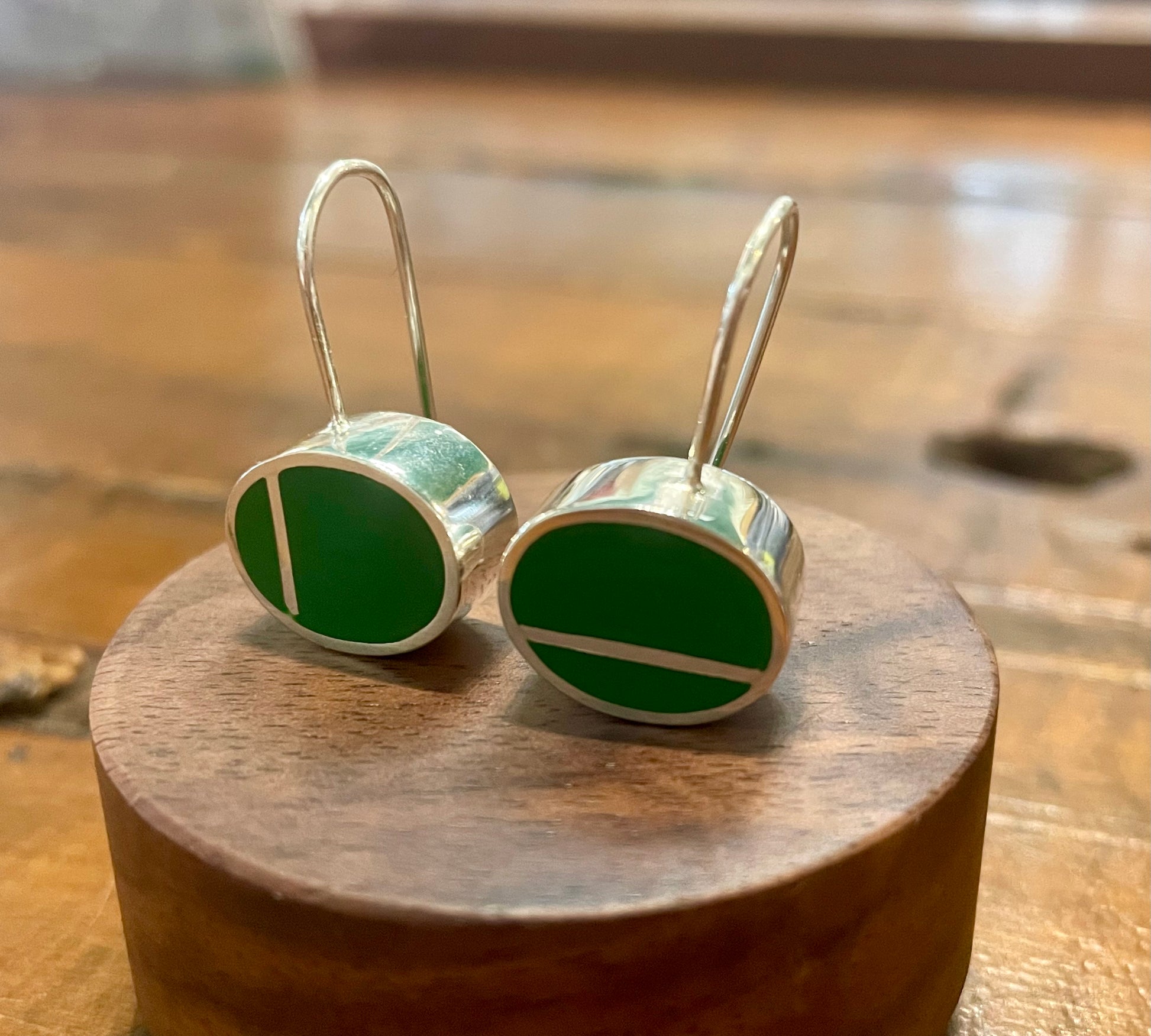 Christine Battocchio is a silversmith working in Yakandandah Victoria. Her jewellery is handmade using silver and fabulous coloured resins. Her designs are simple and modern and inspired by the natural world and our built environments. Every piece is unique. We love Christine’s work!