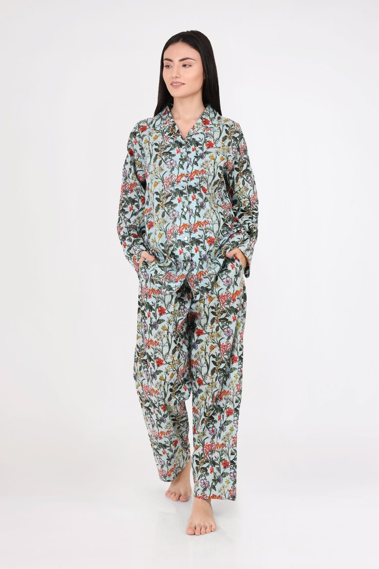 Arabella Long Sleeve Pyjama set - Light Mint with Red Flowers
