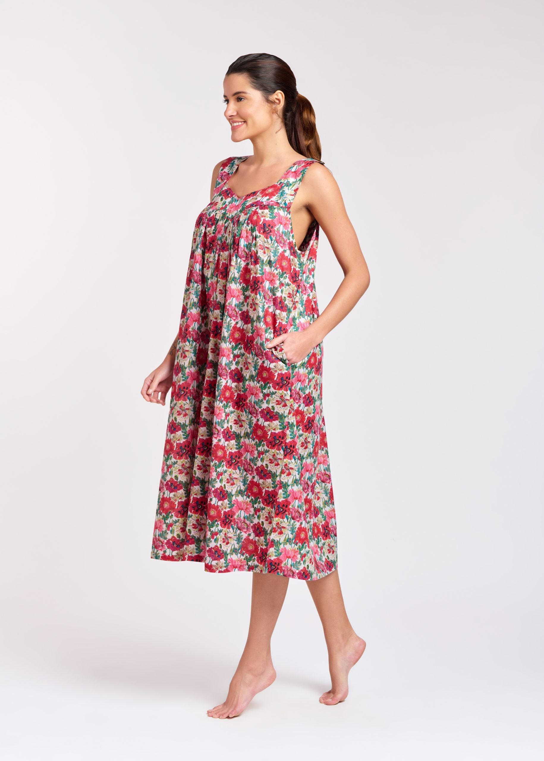 Arabella Collection offers a selection of pretty, feminine and luxurious Cotton Voile Nighties available at George Street Peddlers in White, Pink floral and a lovely pink,red & green print.