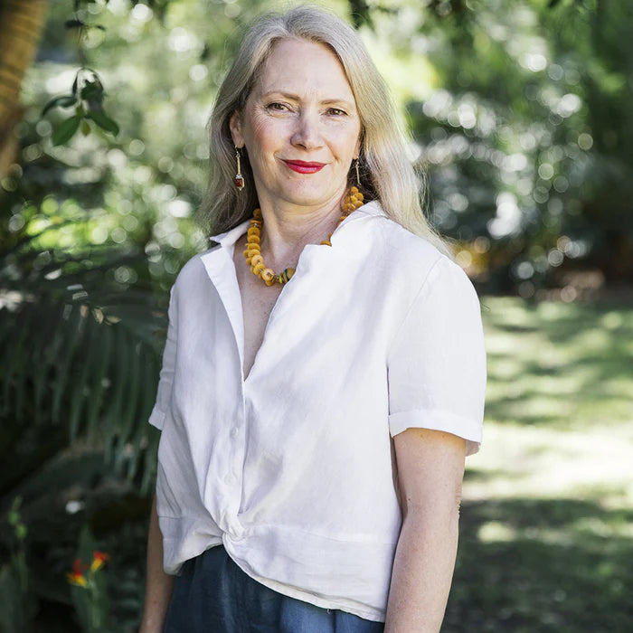 Inspired by 70's style, a casual chic linen crop shirt, featuring a sweet tie front, loosely fitted waist with short cuffed sleeves.