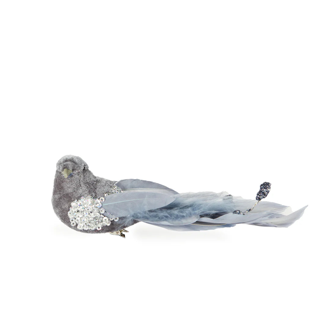 Pretty snowy blue sequin little birds with clip Christmas decoration.