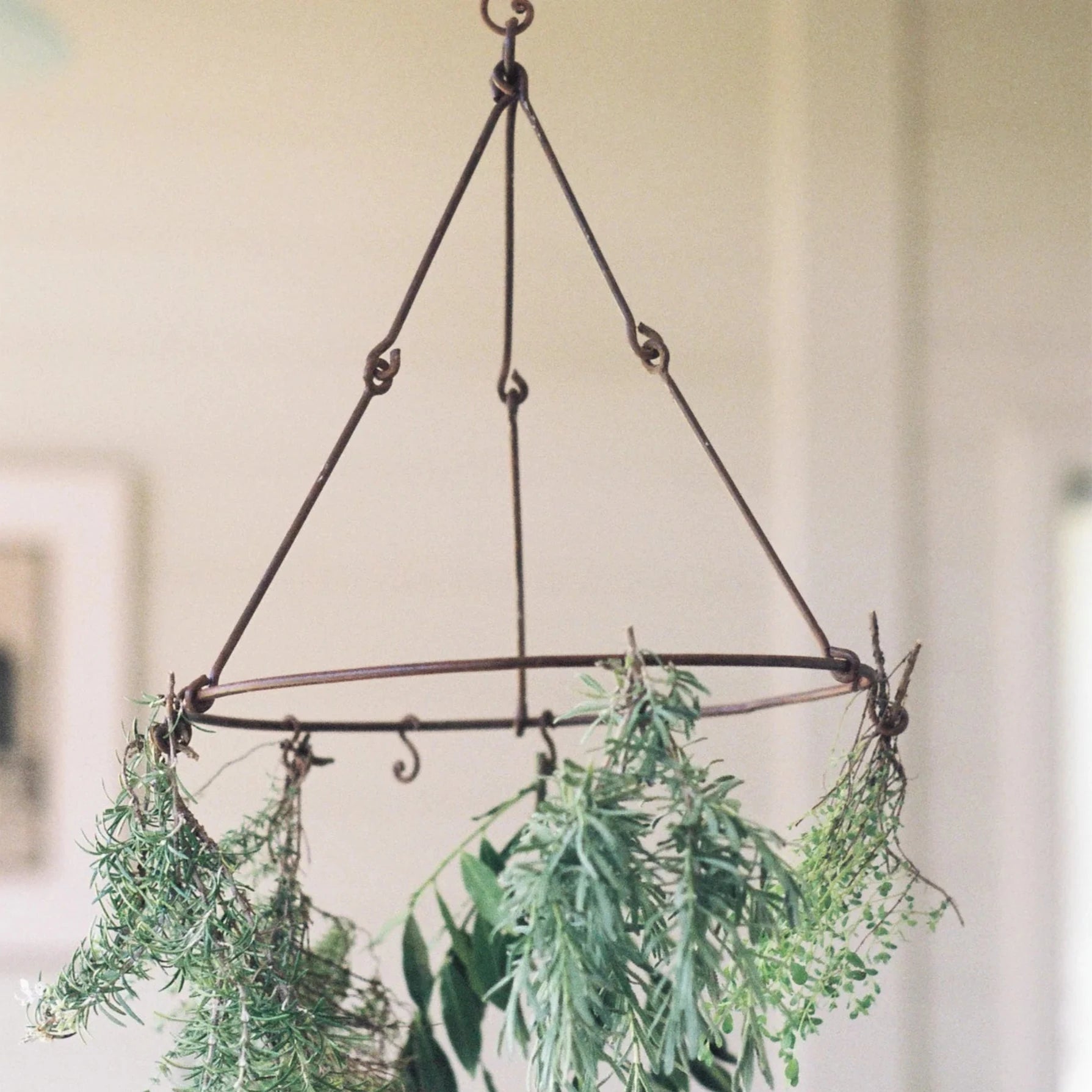 This Herb Dryer is a simple and classical hanging herb drier which enables you to enjoy herbs year round. Simply tie a bunch of herbs to the forged hooks in a dry airy space.
