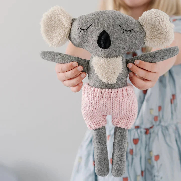 Made with the softest wool blend fabric, Dorothy wears hand knitted Australian merino wool pink pants and has the softest ears.