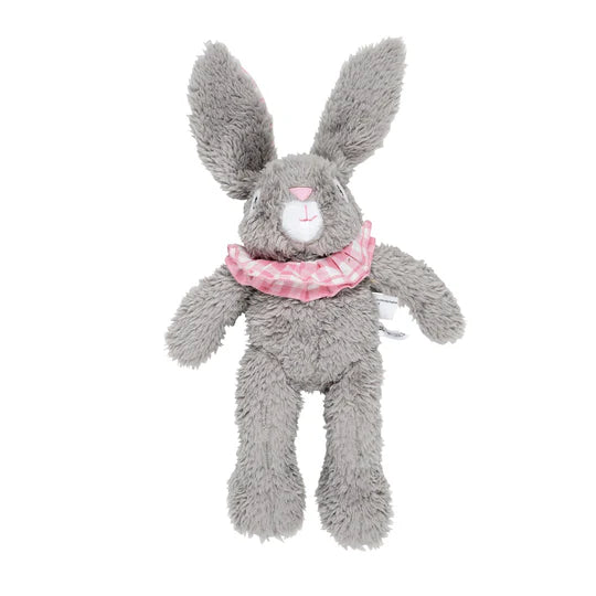 Eloise rabbit is made with silver grey super soft plush fabric and has a rather fancy gingham neck frill (because who doesn't love a bit of gingham).