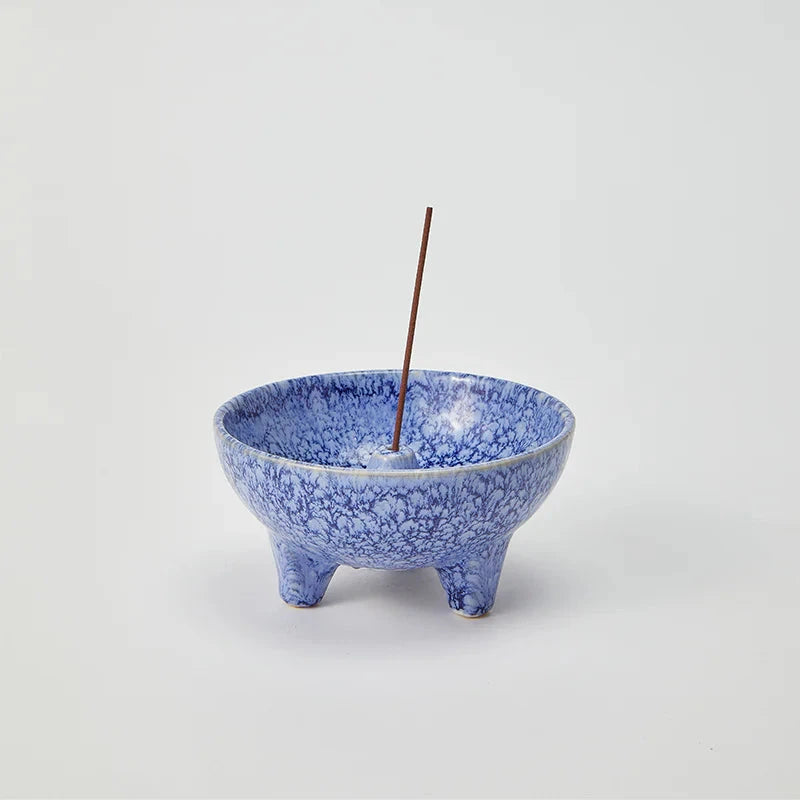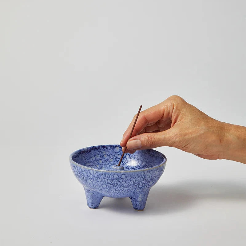 The Sense Burner Water - a versatile footed bowl incense burner that brings a touch of tranquillity to any setting. Handmade with care and adorned with a reactive glaze, this earthenware burner is as functional as it is beautiful. Inspired by the quest for a simple yet elegant incense burner that can remain on display at all times, the bowl design efficiently captures any ash, safeguarding your surfaces. Whether in use or not, this burner exudes charm, making it a sophisticated addition to your home decor.