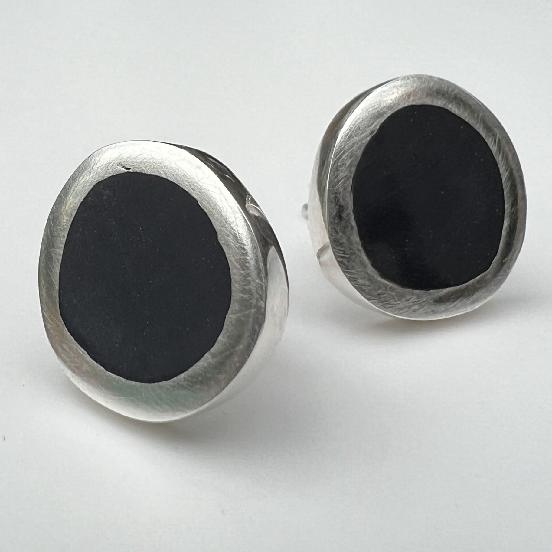 Christine Battocchio Opaque Black Resin and Silver Stud Earrings