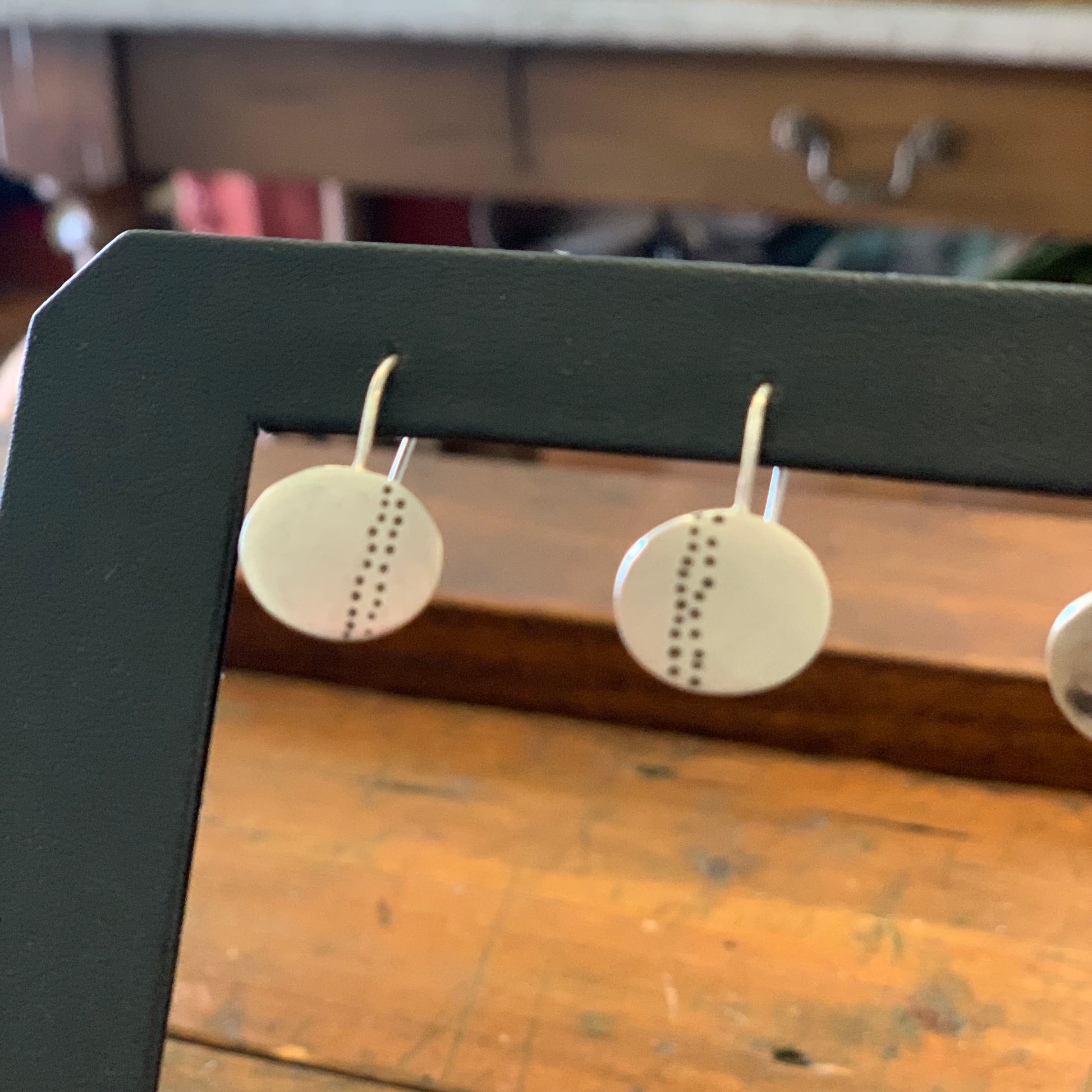 Christine Battocchio oval dot print silver drop earrings
