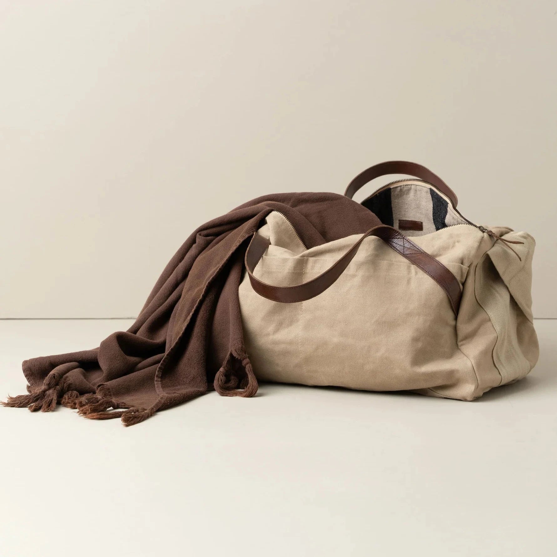 With its effortless slouchy shape and pared-back vintage wash, Saarde’s newly designed Journey Duffle Bag is perfect for every day use. This relaxed cotton canvas bag features internal pouches, a zip-up pocket and 2 deep external pockets.