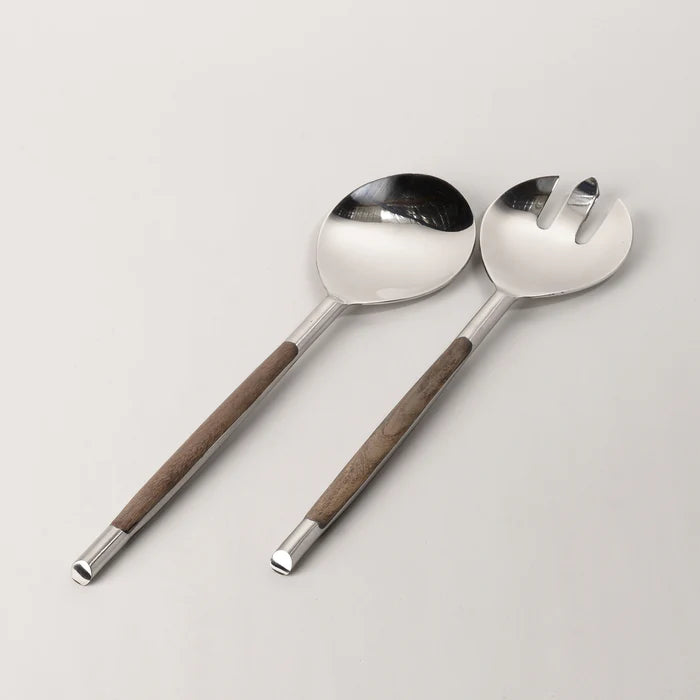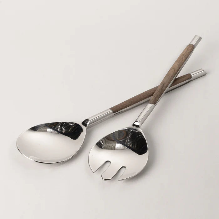 handcrafted stainless steel salad servers available in wood inlay and bone inlay